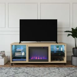 - Stand combines sturdy metal parts with laminated particleboard, hollow core and MDF with tempered glass to make a sleek and modern Fireplace TV Stand for your home